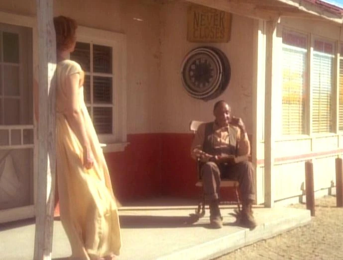 Im Jahr 2372 will der Q Quinn Kathryn Janeway und Tuvok verdeutlichen, wie die Q im Q-Kontinuum leben. Damit Janeway und Tuvok verstehen, wie das Kontinuum aufgebaut ist, wählt er das Erscheinungsbild einer Straße, welche durch die Wüste führt. In einem Haus, welches sich am Straßenrand befindet, sitzen einige Qs. Einer der Qs sitzt im Schaukelstuhl und beobachtet die Neuankömmlinge. (VOY: Todessehnsucht)