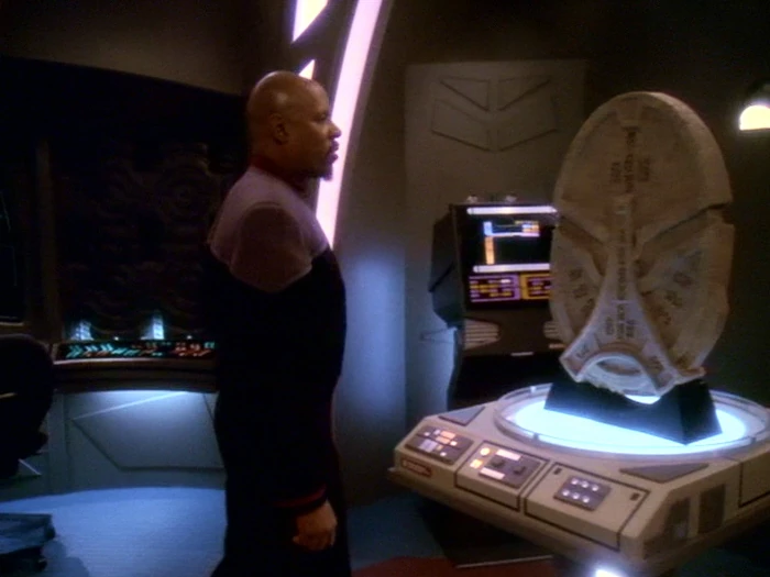 Sisko mit der Steintafel von B'hala