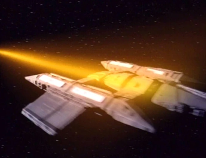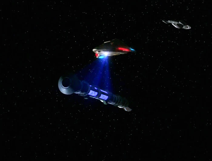 Einige Wochen später nimmt die Enterprise das Transportschiff NCC-G1465 mit den Traktorstrahl in Schlepptau, nachdem dieses durch einen klingonischen Kreuzer schwer beschädigt wurde. (TAS: Mehr Trouble mit Tribbles)