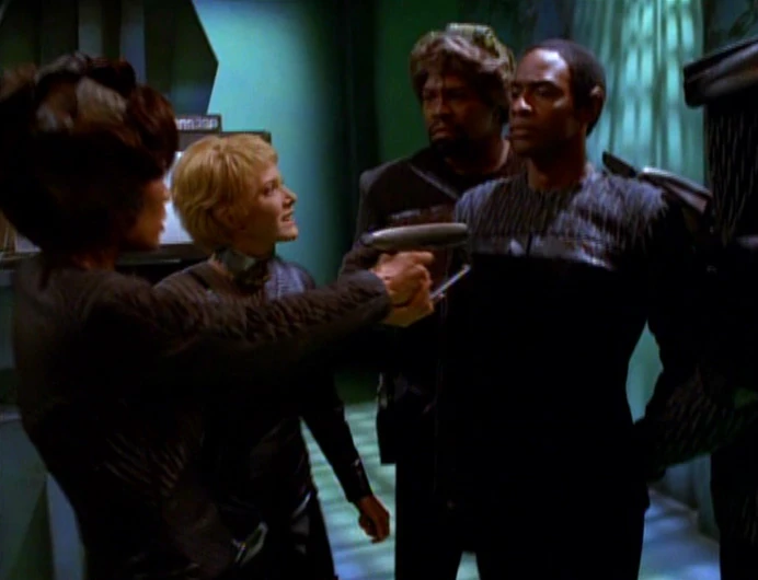 Tuvok zu Elani, als sie ihre Abneigung gegenüber ihrer Situation äußert.