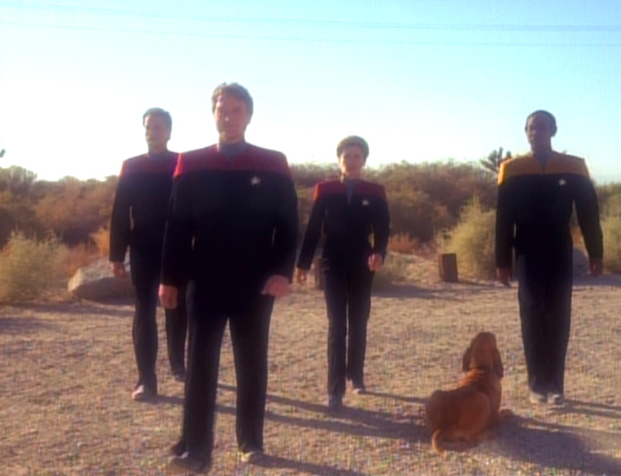 Als Captain Janeway auf den Planeten der Nechani gebeamt wird, verabschiedet er sie im Transporterraum. (VOY: Das Ritual)