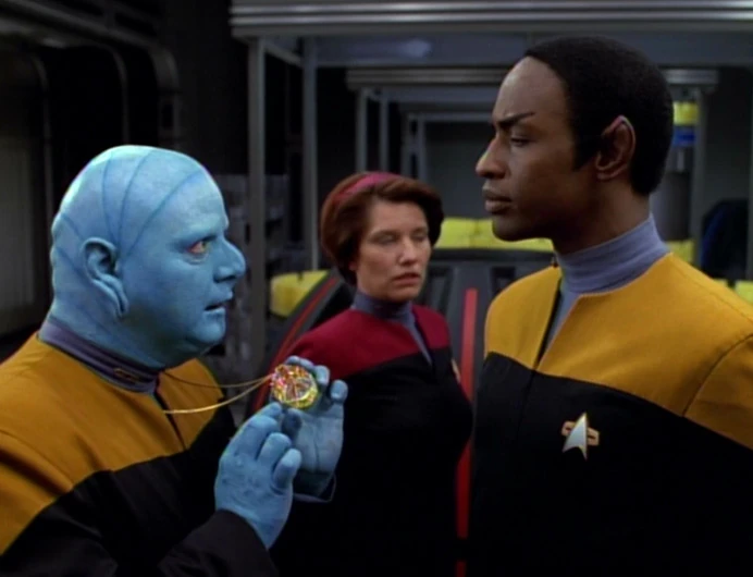 Nachdem Chakotay eigenmächtig die Kazon angreift, um einen entwendeten Transporter zurückzuholen, befiehlt Janeway eine Rettungsaktion. Tuvok arbeitet unterdessen an der Taktischen Station und ortet die Flotte rivalisierender Kazon. (VOY: Das Signal)