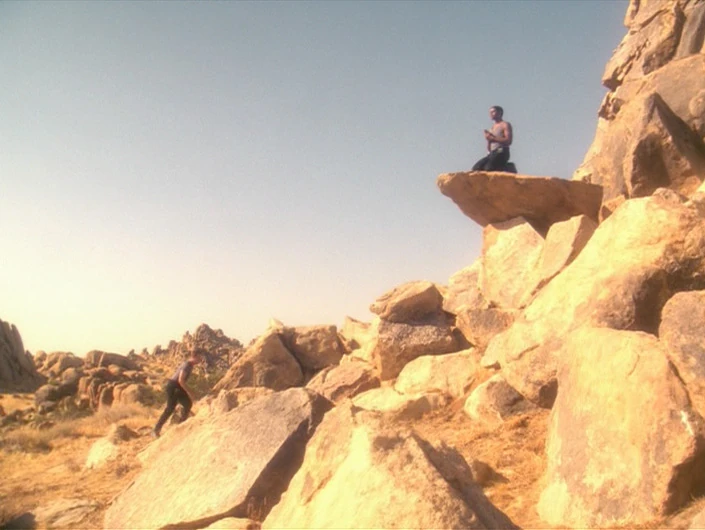 Harry Kim ist auf dem Holodeck verschwunden. Tuvok macht sich zusammen mit Chakotay auf die Suche nach ihm. Als sie den Energiestoß scannen wollen, der für das Verschwinden von Harry verantwortlich zu sein scheint, verschwinden auch die Beiden. Nachdem die Crew festgestellt hat, dass sie unabsichtlich ein Energiewesen gefangen genommen haben, lassen sie es frei und bekommen dafür Harry, Tuvok und Chakotay zurück. (VOY: Helden und Dämonen)