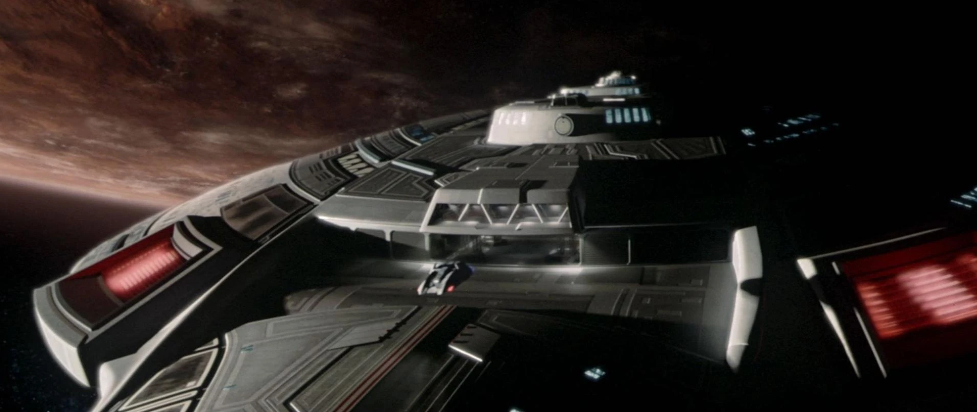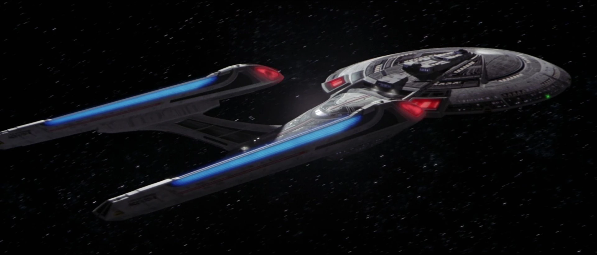 Der Bug der Enterprise wurde für Star Trek: Nemesis als riesiges physisches Modell nachgebaut, um den Einschlag auf die Scimitar realistisch wirken zu lassen. Trümmerteile und der Rest der beiden Schiffe wurden später per Computer hinzugefügt.