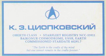 Die USS Tsiolkovsky (NCC-53911) ist ein Forschungsschiff der Föderation der Oberth-Klasse, das in den 2360ern in Dienst ist.