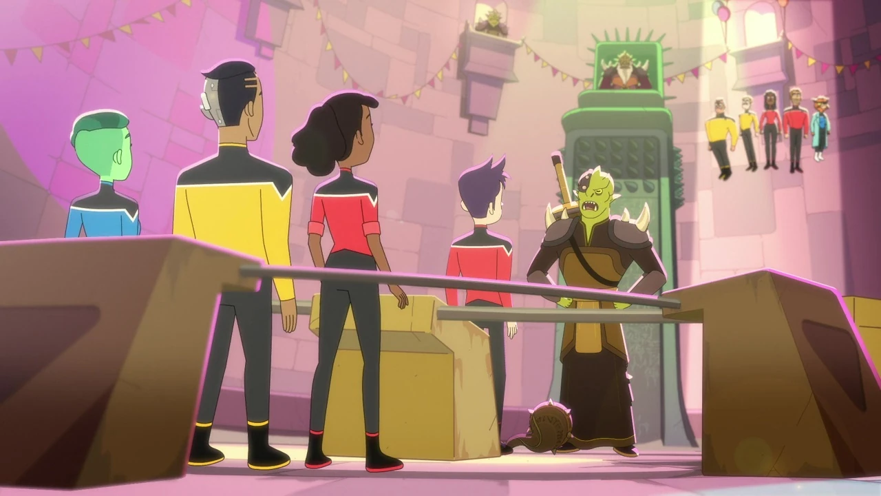 Als sich Mariner, Boimler, Tendi, und Rutherford in einem dunklen Raum einer Befragung über frühere Ereignisse stellen müssen, befürchten sie, an einer Gerichtsverhandlung gegen die Brückencrew der Cerritos teilzunehmen.