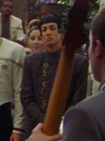 Dieser Vulkanier nimmt im Jahr 2267 am Hochzeitsritual koon-ut-kal-if-fee von Spock und T'Pring teil. Er trägt ein traditionelles Glockenspiel, das er insbesondere beim kal-if-fee-Ritual einsetzt. (TOS: Weltraumfieber)