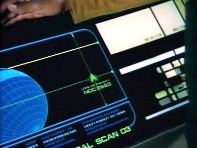 - Al inicio de la simulación se puede observar la consola táctica del USS Hathaway... la cual tiene a la izquierda la típica gráfica de fines del Siglo XXIII... y a la derecha una consola LCARS del Siglo XXIV!!