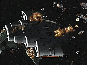 Las naves de la Flota de la Federacion estaban siendo drenadas de energia y sin posibilidades de defenderse, las naves de la Alianza del Dominio empezaron a atacarlas con todo su poder. Casi todas las naves habian sido afectadas y decenas en decenas eran fuertemente atacadas sin que pudieran responder o escapar. Por lo que se ordeno la evacuacion de todas las naves. 311 naves incluyendo la Defiant, ahora flotaban dañadas en el espacio mientras eran atacadas por sus enemigos, permitiendo escapar a los miles de tripulantes de sus naves.
