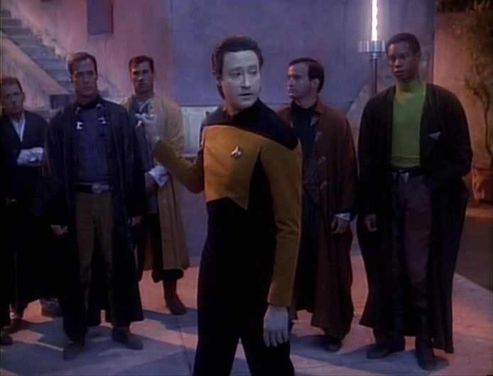 - Durante la rodaje , el Dalai Lama y su comitiva, visitaron el plató y se hicieron fotos con Brent Spiner. (Star Trek: The Next Generation Companion). Una de estas fotos aparece en la versión original en VHS para Reino Unido.