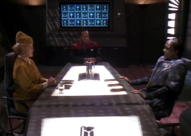 Negociaciones entre el Legado Dukat (Cardassia), Winn Adami (Bajor) con mediacion de Benjamin Sisko (Federacion)