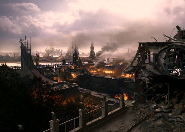 Ciudad capital de Cardassia en ruinas tras el ataque Jem'Hadar