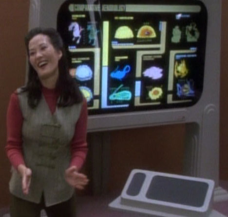 Keiko plaça les pupitres interactifs d'études en un demi-cercle autour du module d'enseignement principal. (DS9: "A Man Alone", "In the Hands of the Prophets")