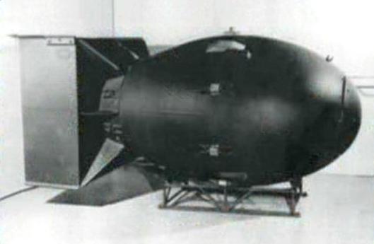 - L'armée américaine déploya la bombe atomique "Fat Man". (Réalité extrapolée *)