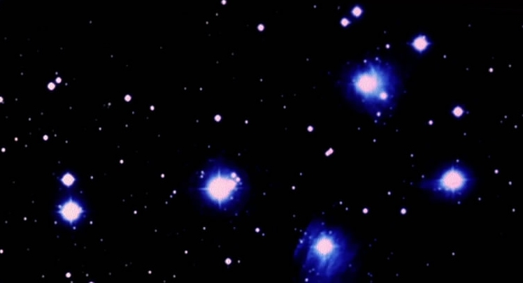 L’image du groupe stellaire de Talos était une exposition astrophotographique en couleur de l’amas M45, dit des "Pléiades". L’exposition étant relativement courte, il lui manquait les détails caractéristiques de la nébuleuse de Mérope. Cependant, cette nébuleuse donne une sorte de halo bleuté aux étoiles visibles dans la photographie.