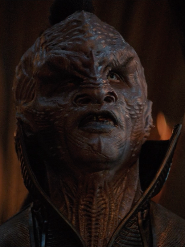 Kathryn Janeway incarnant un guerrier klingon de la maison de Mo'Kai