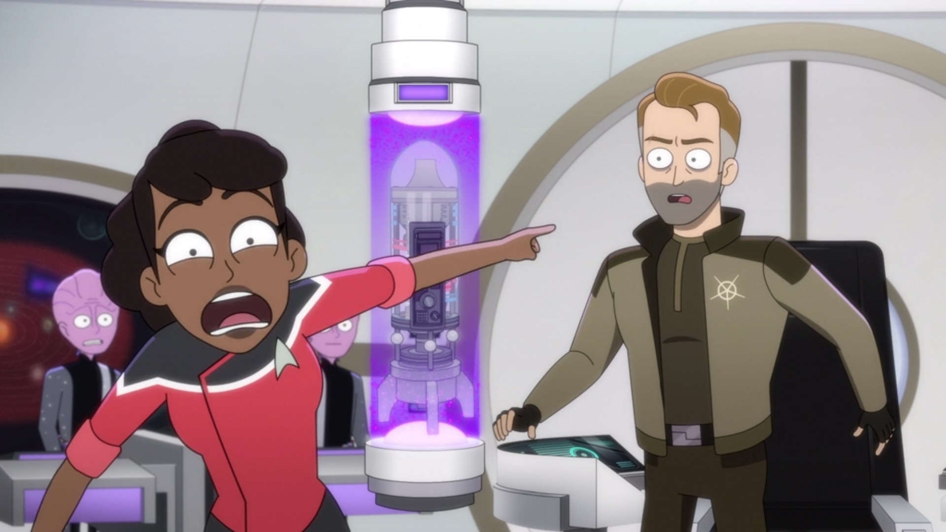 - Personnages: Petra Aberdeen / Joshua Albert / Boothby / Dahae / Gary (USS Cerritos) / Goodgey / Jean Hajar / Steve Levy / Malok / Meredith (USS Cerritos) / Merp / Grand Merp / Sleepy Merp / Mirab / Taylor (USS Cerritos) / Hyspériens / personnel inconnu de l'USS Cerritos NCC-75567 / personnel du vaisseau de Vrek