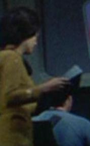 En 2268, cette femme de la divison de commandement fut régulièrement aperçue avec le lieutenant officier scientifique ou à passer derrière Wesley lors des communications visuelles établies avec l' Enterprise. (TOS: "The Ultimate Computer")