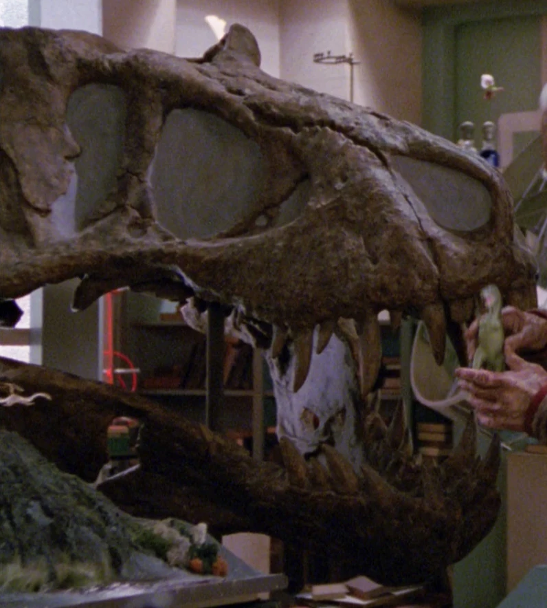 Dans les années 2360, le Dr Noonian Soong possédait le crâne d'un Tyrannosaurus rex dans son laboratoire sur Terlina III. (TNG: "Brothers")