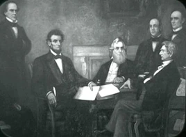 La peinture intitulée "First Reading of the Emancipation Proclamation of President Lincoln" présentait Lincoln et les membres de son cabinet, lors de la première lecture de la Proclamation d'émancipation en 1862. Cette peinture figurait dans les bases de données de l'USS Enterprise, scannées par les Talosiens en 2254. (TOS Remastered: "The Cage")