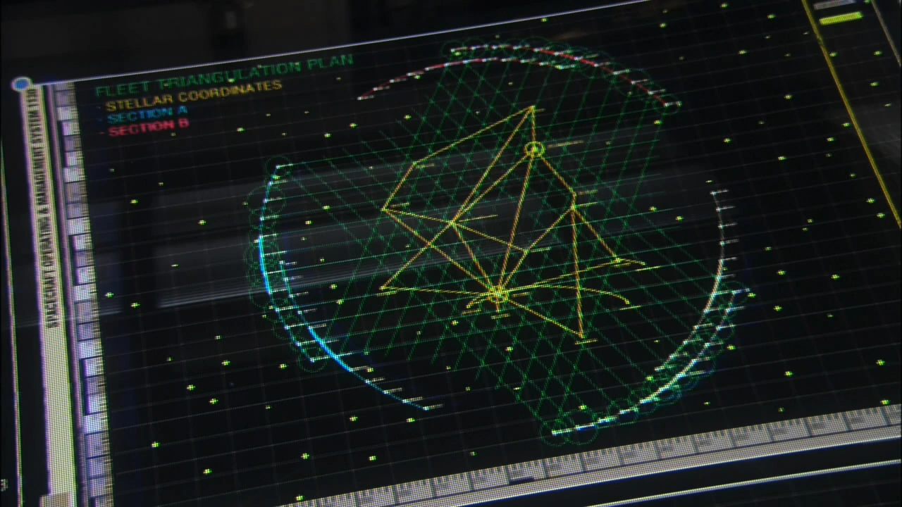 The location of the center of the sensor grid (bottom) in relation to Andorian and Tellarite ship locations (top), presumably signifying their territories
