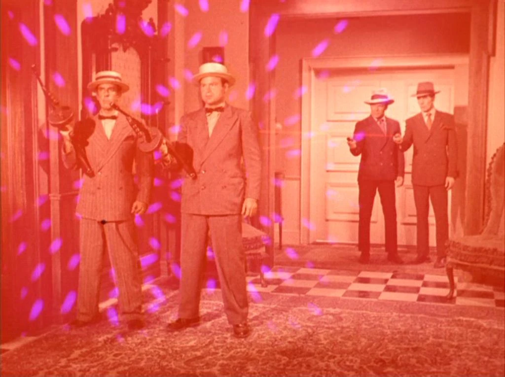 一方カークは、ラジオのワイヤーを使った罠を部屋に張り巡らし、助けを求める振りをして警備のギャングを倒し、マシンガンを奪って部屋から脱出した。