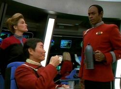 | Hikaru Sulu met Kathryn Janeway en Tuvok |