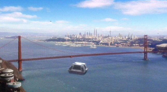 - Nadat ze in het jaar 2024 terecht waren gekomen konden Benjamin Sisko en Julian Bashir aan de brug zien dat ze in San Francisco waren. (DS9: "Past Tense, Deel I")