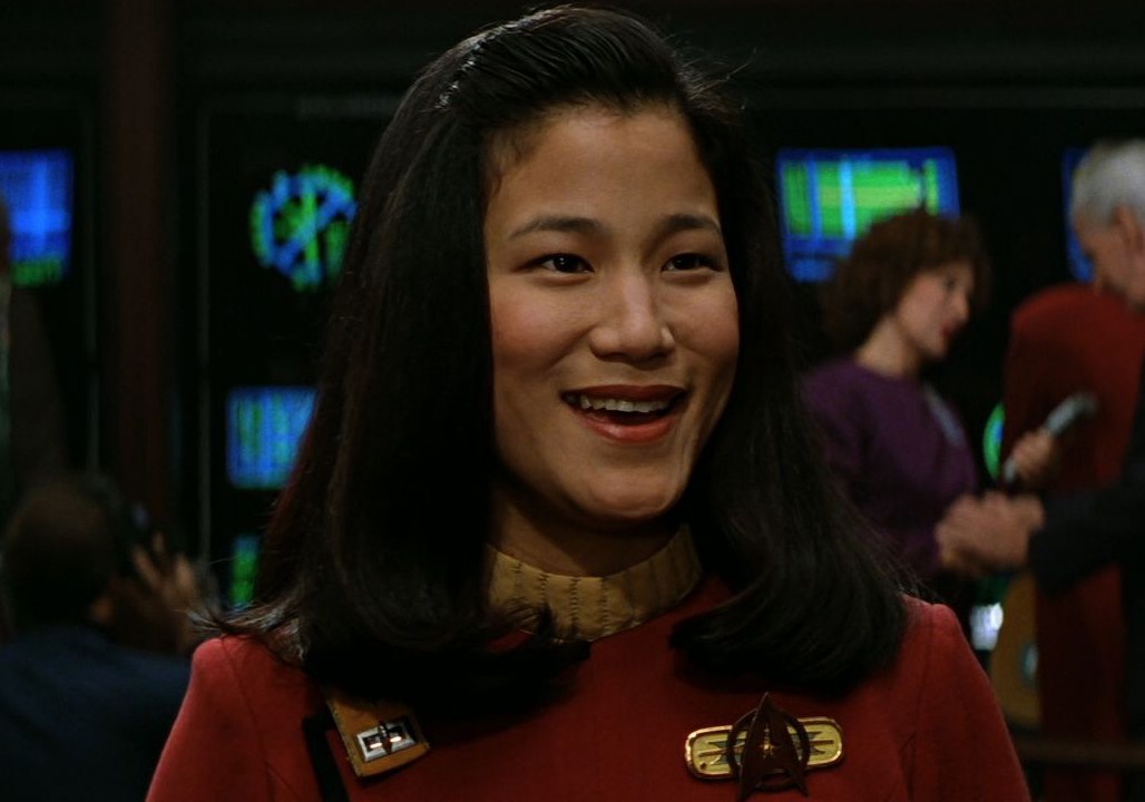 Jacqueline Joan Kim, geboren op 31 maart 1965, speelde vaandrig Demora Sulu in "Star Trek: Generations".