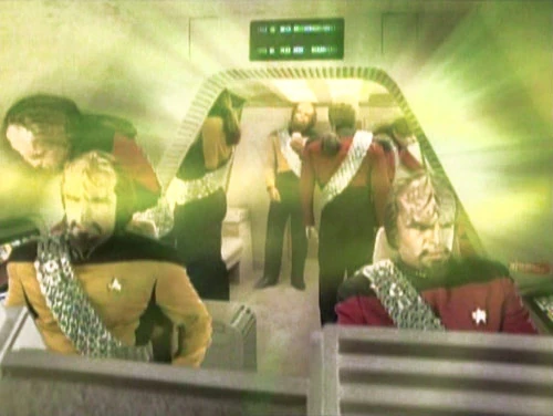 Kapitein Picard geeft Worf het commando om de schilden aan te zetten en fasers te vuren, maar Worf's paneel is plotseling van indeling veranderd. Na nog een hoofdpijn die hij in boordwerktuigkunde ervaart, blijkt dat hij getrouwd is met adviseur Deanna Troi en vlak daarna krijgt hij weer een dergelijke hoofdpijn waarna hij plotseling ook kinderen met Deanna heeft.