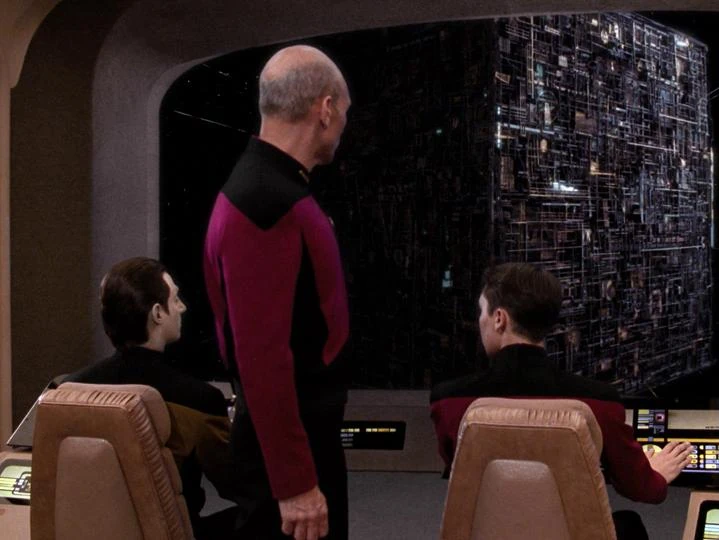 De kubus hield zijn koers aan, met de Enterprise in de achtervolging. Will Riker, de waarnemende kapitein, had een plan om de kubus uit warp te forceren door gebruik te maken van de deflector schijf van de Enterprise. Een verkenningsteam, geleid door Lt. Cmr. Shelby, werd naar de kubus gestuurd om de warpaandrijving van de kubus uit te schakelen. Dit lukte, maar tevens werd toen ontdekt dat kapitein Picard geassimileerd was door het Borg collectief; hij was een Borg dar geworden met de naam Locutus van Borg. De Enterprise vuurde daarna zijn deflector wapen af.