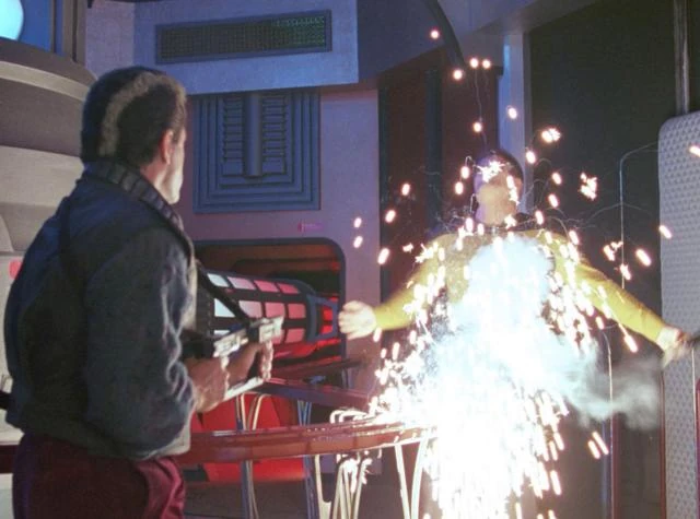 De Enterprise en een Romulan oorlogsschip worden aangevallen door een computer. | |||