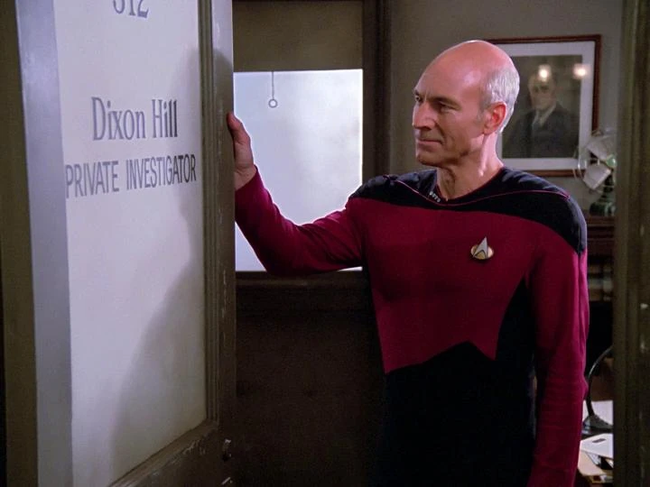 Kapitein Picard en een aantal bemanningsleden van de Enterprise komen vast te zitten op het holodek. | |||