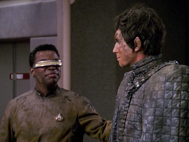 Na een transporter ongeluk op een Romulan oorlogsvogel worden La Forge en Ro onzichtbaar. | |||