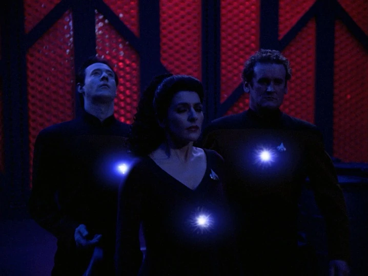 Buitenaardse wezens nemen de lichamen van Data, Troi en O'Brien over. | |||