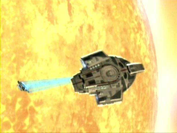 | De USS Defiant neemt de Yukon op sleeptouw |