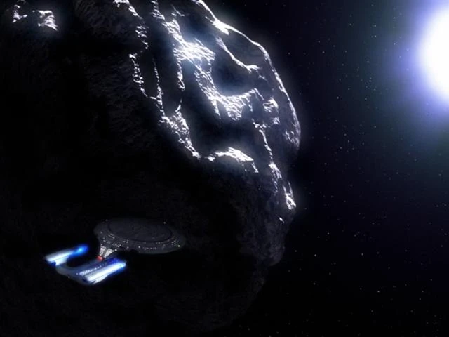 | De USS Enterprise-D in een baan om Vandor IV | ||