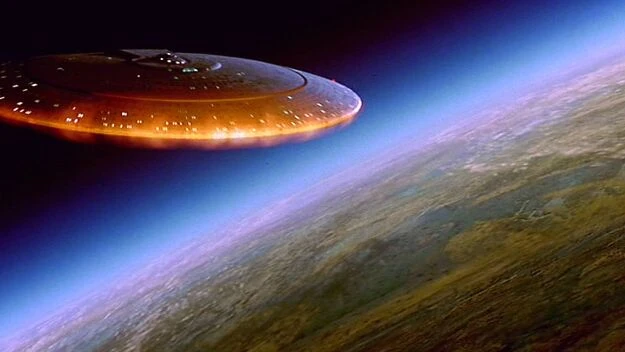 | De schotelsectie van de USS Enterprise-D boven Veridian III | ||