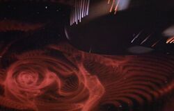 | De USS Enterprise zit vast in een wormgatachtige verstoring |