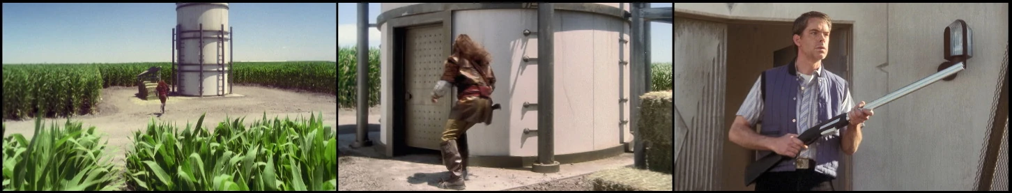 Pilot zdołał opuścić statek i był ścigany przez dwóch żołnierzy Suliban. Zdołał zwabić ich do silosu, który zniszczył wywołując eksplozję przy użyciu swojej broni.