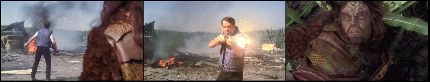 Chwilę później doszło do nieporozumienia między nim i rolnikiem Moore, który postrzelił go w samoobronie przy pomocy karabinu plazmowego z powodu agresywnego zachowania Klingona i bariery językowej. (ENT: Broken Bow)