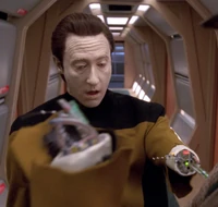Data ma swój pierwszy koszmar - we śnie widzi grupę górników z kilofami, którzy niszczą Enterprise. Kiedy próbuje zwrócić im uwagę z jego ust dobywa się tylko wysoki pisk, na który górnicy reagują agresją - rozrywają Datę na części.