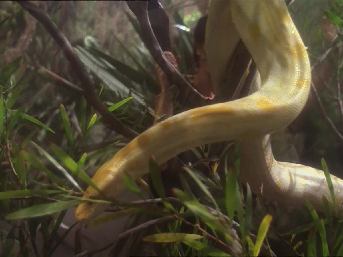 Wąż w wizji Bareil był boa z drzewa szmaragdowego (Corallus caninus).
