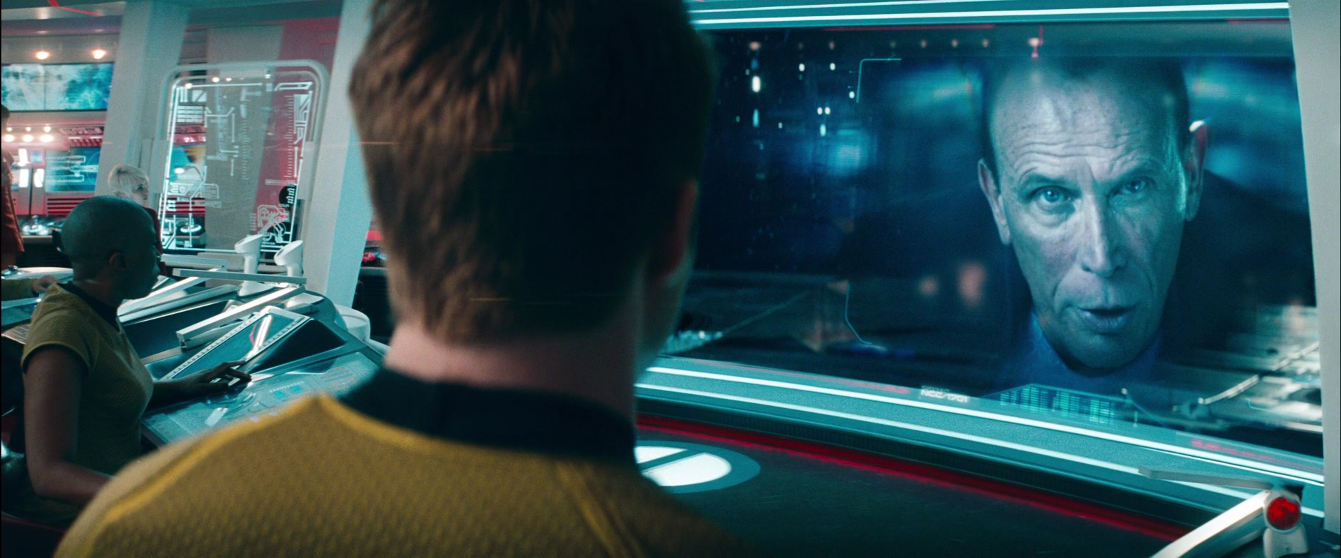 Когда они добрались до мостика, Кирк столкнулся с Маркусом из-за его предательства идеалов Звездного флота. Однако попытка Скотта оглушить Хана не повлияла на него, и Аугмент схватился со Скоттом и Кирком, прежде чем продолжить убивать Маркуса и занять командное кресло. Хан приказал Споку передать торпеды, что тот выполнил, а взамен телепортировал Кирка, Скотта и Кэрол на гауптвахту "Энтерпрайза".
