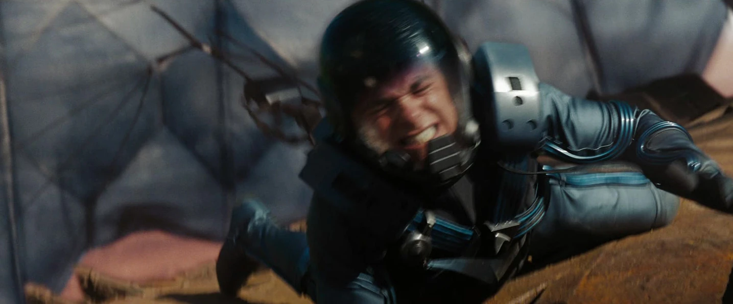 Прежде чем вернуться на "Энтерпрайз", Сулу упал с буровой платформы и начал стремительно падать к поверхности Вулкана. Кирк спрыгнул с платформы, чтобы спасти его. После перехвата Сулу Кирк заставил рулевого вытащить свой парашют, но он был сбит, оставив их обоих в свободном падении. Однако энсин Павел Чехов сумел компенсировать гравитационное притяжение Вулкана и перенес их обоих на борт.