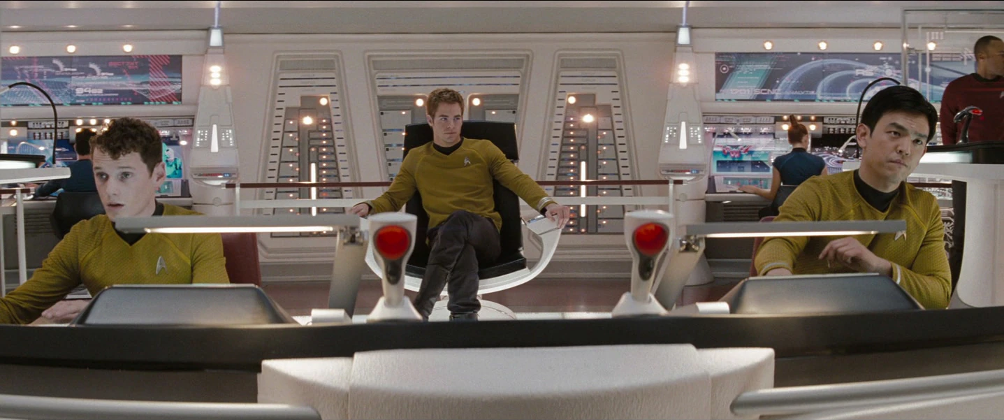 Кирк попытался рассказать капитану Пайку и Споку о нападении Неро и его ловушке, и с помощью Маккоя и Ухуры он смог убедить Пайка в ловушке. Пайк поднял щиты "Энтерпрайза", когда они вошли в систему Вулкана, только для того, чтобы обнаружить огромное поле обломков разрушенных звездолетов Федерации, подвергшихся нападению Неро.
