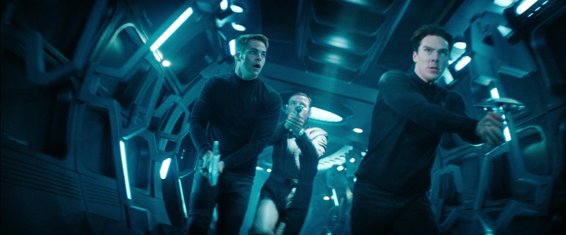 Кирк, Скотти и Хан бегут по коридорам "Vengeance"