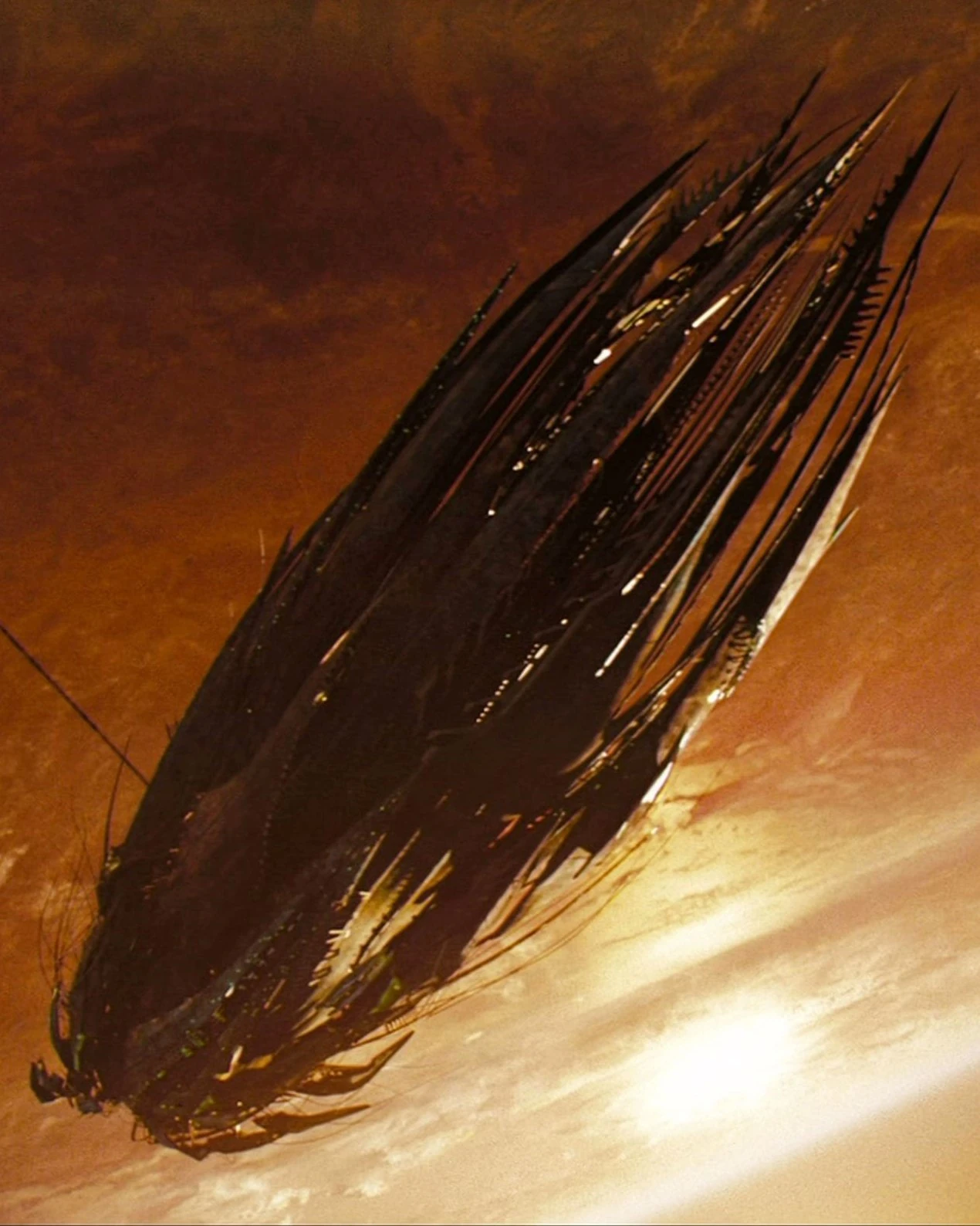Супервайзер ILM Брюс Холкомб заявил, что длина "Нарады" составляет шесть миль (десять километров) [1], в то время как журнал Post упоминает, что ее длина составляет пять миль (восемь километров). Blu-ray фильма дает окончательную оценку длины корабля в 30 737,3 фута (9 368,7 метра). Несмотря на это, корабль был одной из самых больших цифровых моделей, когда-либо созданных компанией: по словам Роджера Гайетта, для детализации требовался масштаб около 1:1.