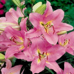 Broadwayliljor, en sort av liljor i rosa toner med gula inslag. Det är en orientalisk blomma i grunden.