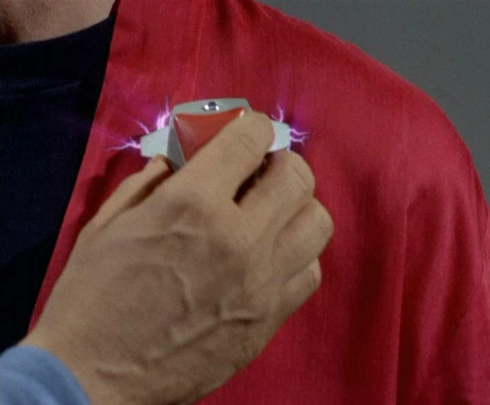 An agonizer was a small device worn on the belts of Imperial personnel in the mirror universe, used to inflict pain for minor transgressions. More severe offenses called for using the agony booth. (TOS: "Mirror, Mirror")